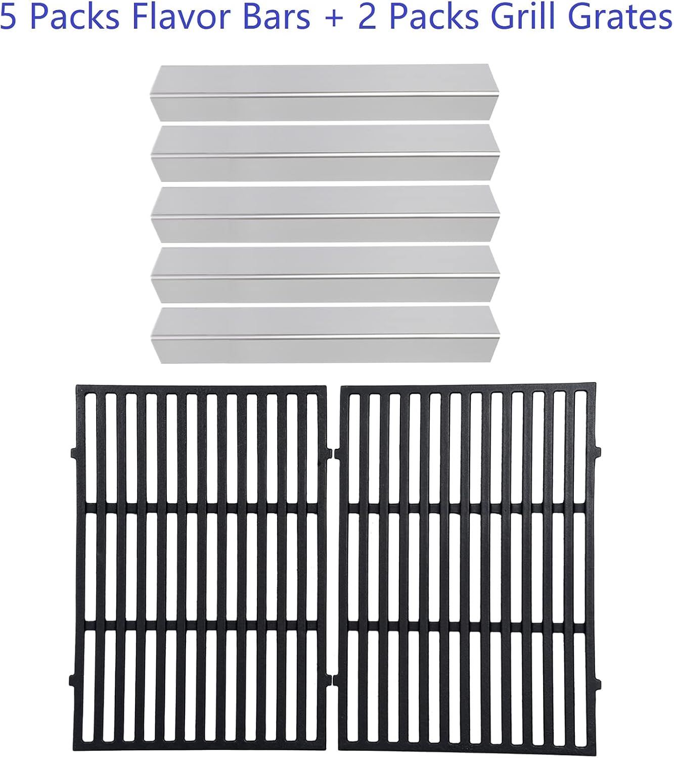 Specifications: ★ Parts kit replacement for Weber Spirit 300 series gas grills (with Front Control Knob)(2013-2017): Spirit E-310, Spirit E-320, Spirit E-330, Spirit S-310, Spirit S-320, Spirit S-330, replace for Weber 7636 & Weber 7638 ★ These parts kit includes 5 packs flavorizer bars and 2 packs grill cooking grates ★ Flavorizer bars dimensions: 15.3 inches long, 2.6 inches wide, 2.5 inches hide ★ Grill cooking grates dimensions: 17.5 x 11.9 inches for each, 17.5 x 23.8 inches for 2 units ★ Flavorizer bars material: 304 Stainless Steel, No magnetic. Cooking grate material: Cast Iron. Durable and corrosion resistant material ★Sold heat shield plates and grill grid grate in a set, one-stop shopping, get what you need in a decent price to renew your grill Note: ★Aftermarket replacements, please double-check the model of your bars before you order