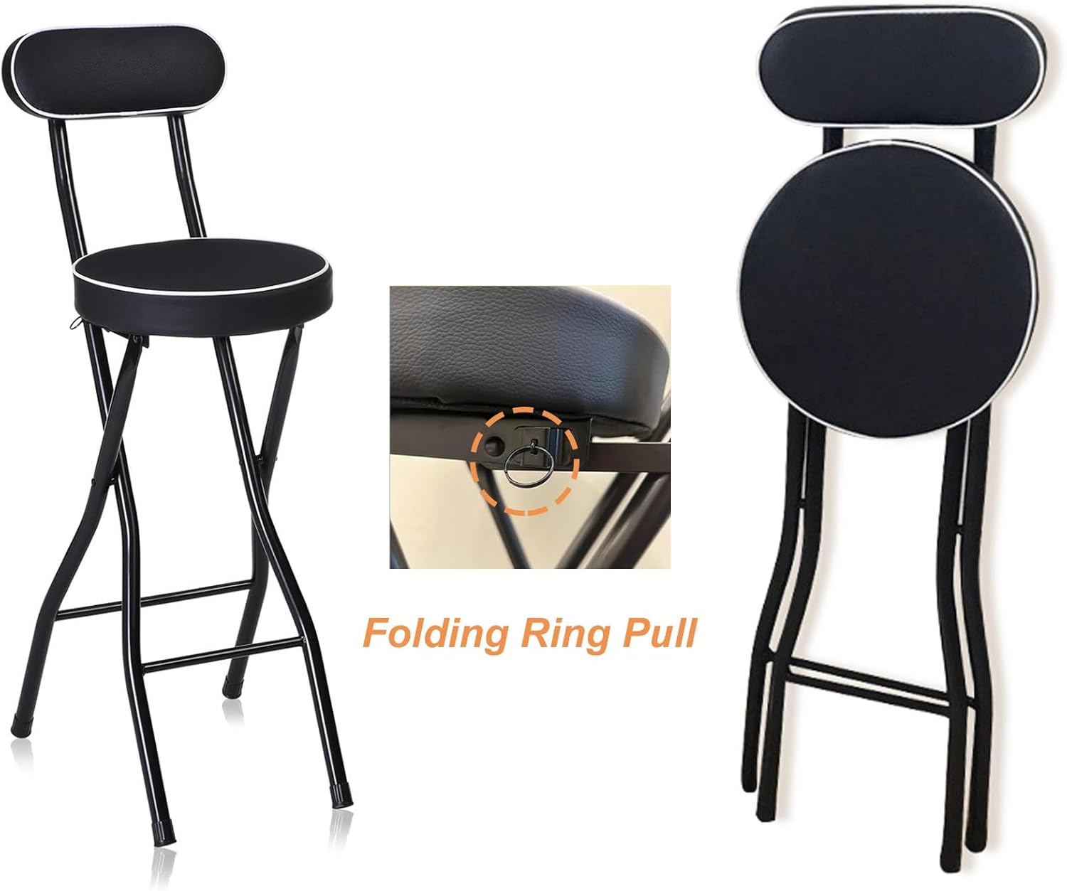 These folding stools offer a versatile and stylish seating solution, offering comfortable sitting options Height from seat to floor: 55cm/22inch, suitable for 80cm/31.5inch high Height 60cm/24inch, 90cm/35inch 65cm/26inch 95cm/37inch 70cm/28inch 100cm/39inch 75cm/30inch 105cm/41inch Expanded size (width × depth height): 26x40x78cm/10x16x31inch 26x40x83cm/10x16x33inch 26x40x88cm/10x16x31inch 32x48x95cm/12.6x18.9x37.4inch 32x48x100cm/12.6x18.9x39.4inch Dimensions after folding: 26x9x88cm/10x3.5x34.6inch 26x9x93cm/10x3.5x36.6inch 26x9x98cm/10x3.5x38.5inch 32x9x105cm/12.6x3.5x41.3inch 32x9x110cm/12.6x3.5x43.3inch Seat size: 30x30cm/12x12inch Colour: Black Material: steel pipe + PU cushion Maximum load capacity: 150kg/330lbs Packing list: Folding stool x1 Notice: Manual measurement, please allow slight errors in size. Colors may vary slightly due different screen displays
