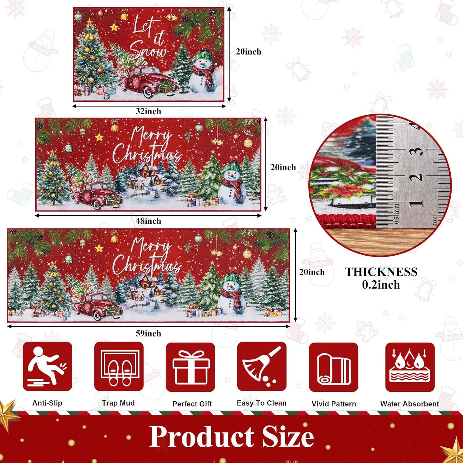 | Other Special Features of the Product | Christmas kitchen rugs and runner, Low Profile, Non Slip, Set of 3, Washable |